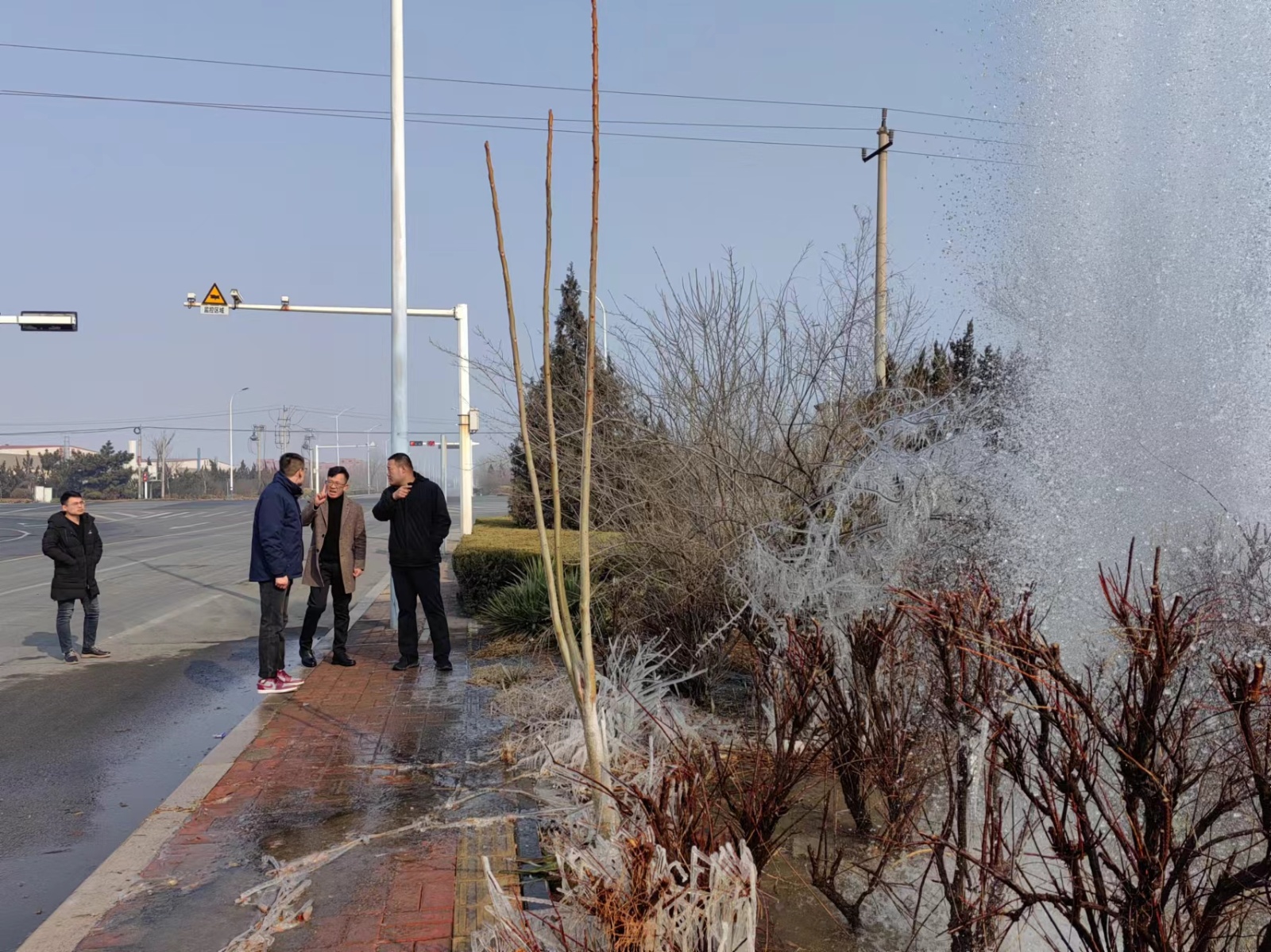 甲辰龍年大年初一早7點(diǎn),正當(dāng)大家沉浸在濃厚的春節(jié)節(jié)日氣氛中,濰坊供水集團(tuán)值班熱線接到群眾報(bào)修電話,發(fā)現(xiàn)供水管道疑似破裂漏水,附近200多家企業(yè)和1000多戶居民用水受到嚴(yán)重影響,供水集團(tuán)立即啟動(dòng)供水突發(fā)事件應(yīng)急預(yù)案,值班領(lǐng)導(dǎo)張明興、杜鑫組織客戶服務(wù)部、工程管理部、惠澤水廠等維修工作人員組成搶修隊(duì),第一時(shí)間趕赴現(xiàn)場(chǎng),根據(jù)現(xiàn)場(chǎng)情況制定搶修方案,全力展開管道搶修。